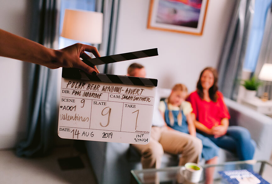 TV advert with CGI polar bear and live action actors illustrating the transformation of new windows can make into a home. A few scenes were edited to allow the company to use the advert throughout the year to help the adverts longevity.